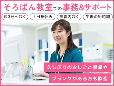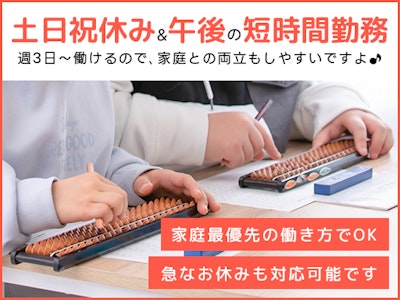土日祝休み♪午後のスキマ時間を有効活用して働ける事務&そろばん教室のサポート業務◎珠算経験とパソコンの基本操作ができれば未経験者さん大歓迎です!