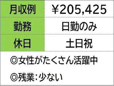 - 時給 1,100円以上 【給与】 時給 1100 円 ☆月収例 205,425円♪ 〈所定168h×1100円+残業15h×1375円〉 ※試用期間は2週間(時給の変動なし) ☆給与前払制度あり♪ お電話いただければ即振込み可能!毎週OK! お気軽にお使えいただけます。 【交通費】 ☆電車通勤の場合、通勤定期代(上限1万円まで)応援制度あります。 ☆通勤スクーター貸出(月3500円)あります。←これ、人気あります♪ ☆通勤自転車無料貸出あります。 ◆派遣が初めての方や、遠方からも安心してご応募ください! ◆夜間の面接や、お友達同士でのご応募もお気軽にご相談ください。